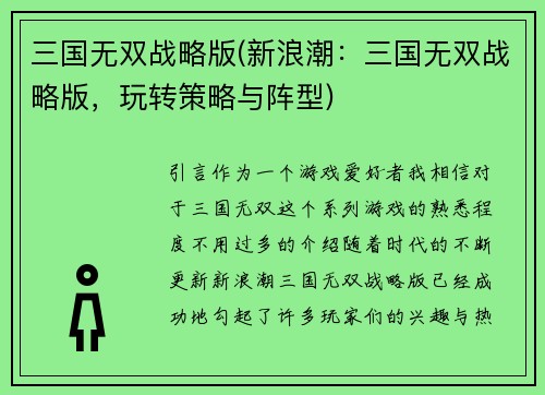 三国我最牛(三国最强王者:我的霸业如何开创?)